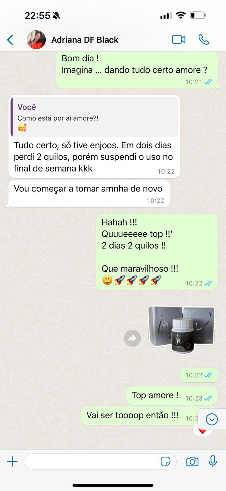 Comprar esse" Minha amiga que comprou com você, com 10 cápsulas ela já eliminou 6kgs. Eu em 5cápsulas acho que foi 2kg"